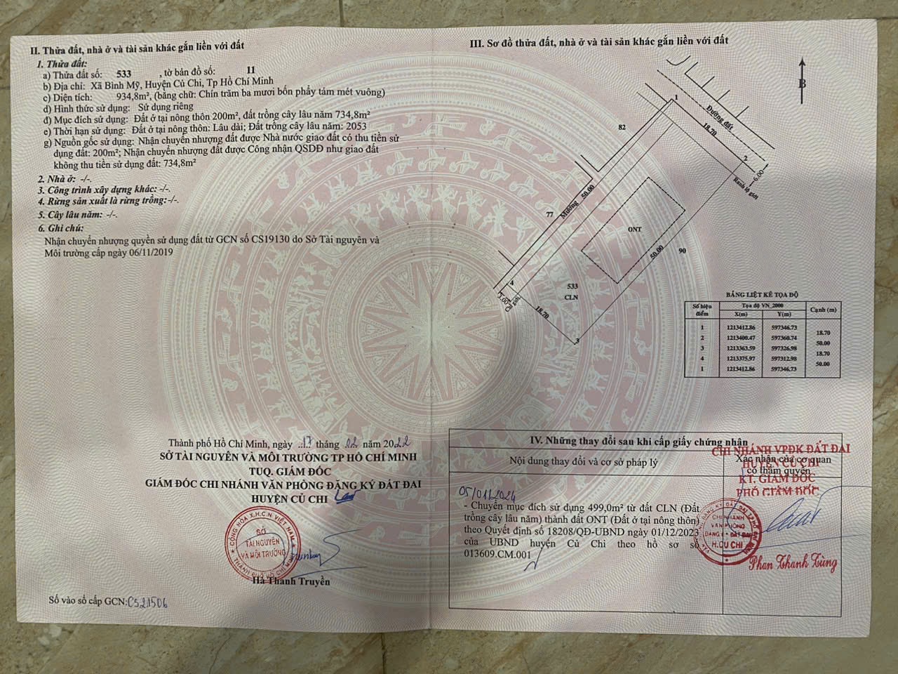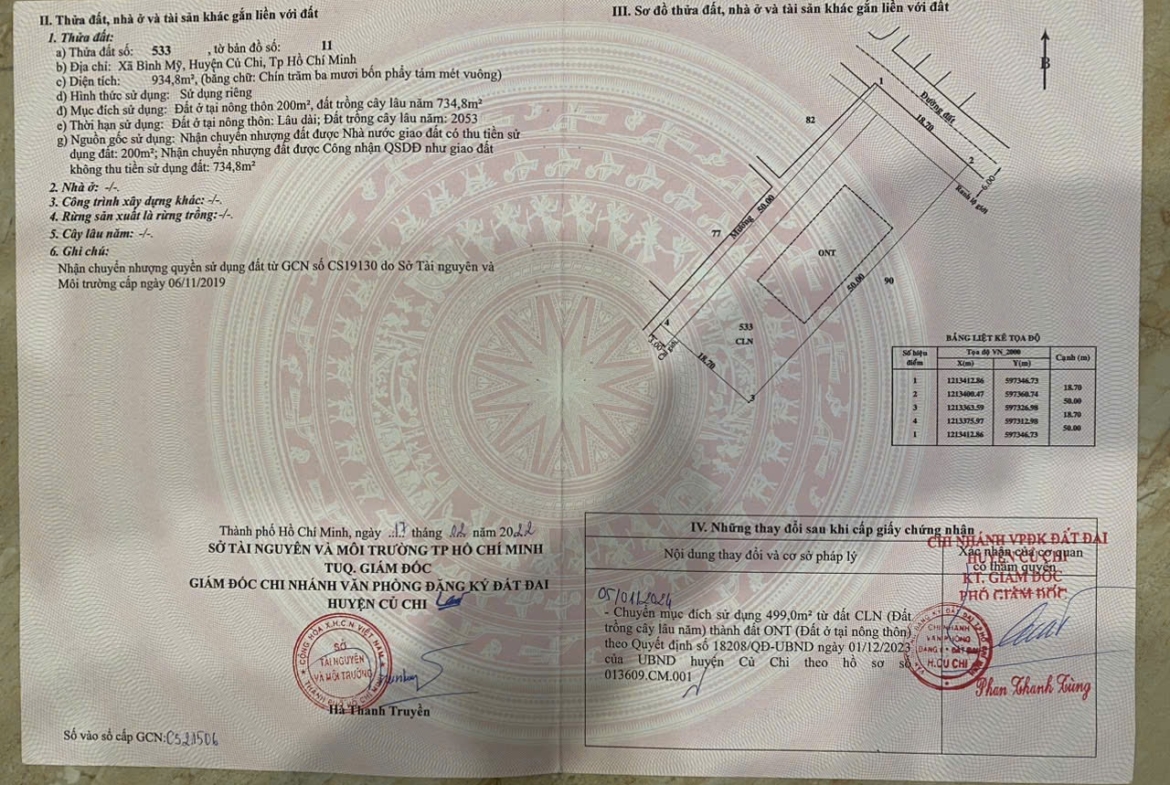 Bán 935m2 đất có 699m2 đất thổ cư